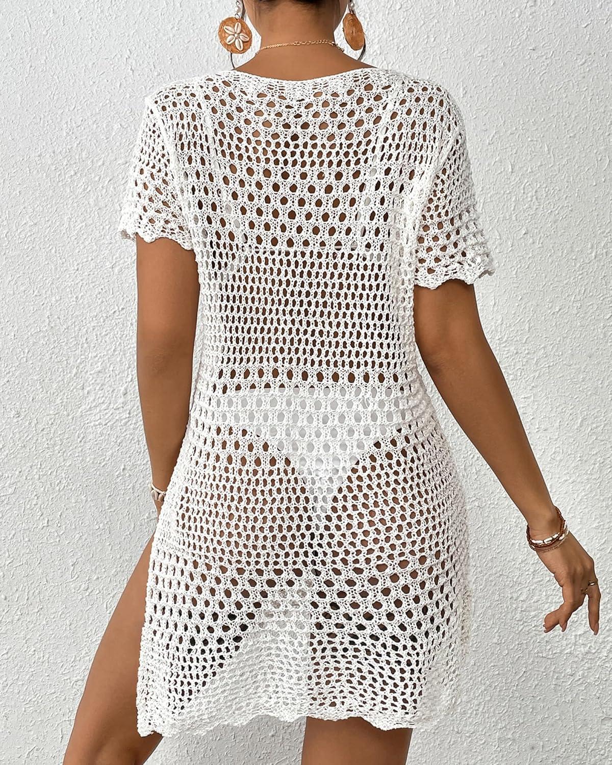 Bsubseach Bathing Suit Cover Up for Women Hollow Out Crochet Coverups Beach Dress 2026 Vacation Outfits(White)