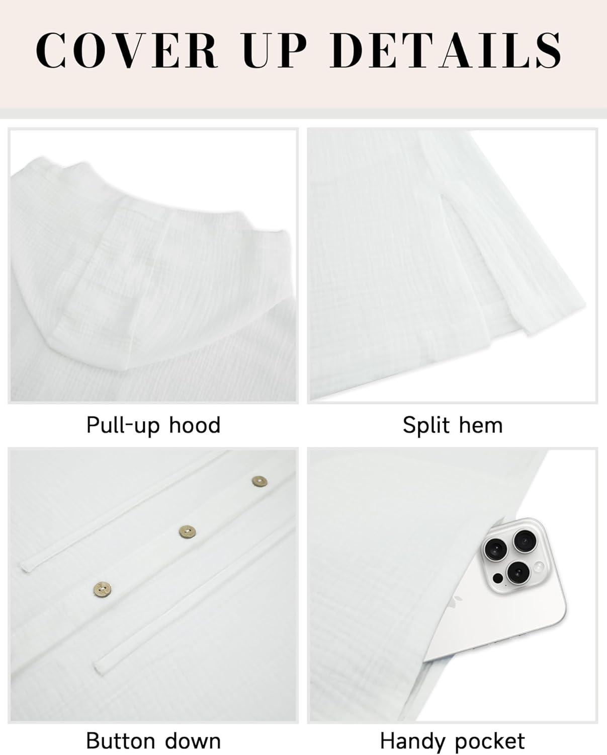 Be the first to review “Bsubseach Cotton Swimsuit Cover Up For Women 2025 Button Down Hooded Shirt Short Sleeve Beach Cover Ups With Pockets(White)”