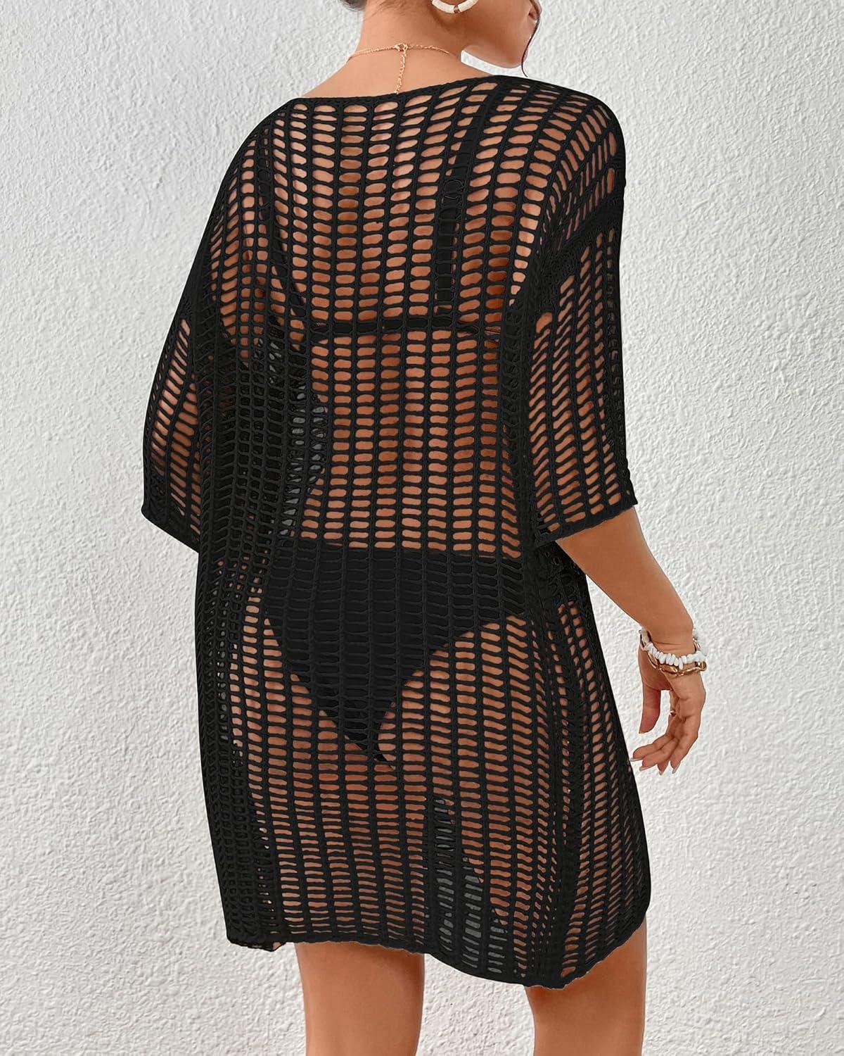 Bsubseach Crochet Beach Cover Up for Women Hollow Out Swimsuit Coverup Knit Pullover Beach Dress(Black)