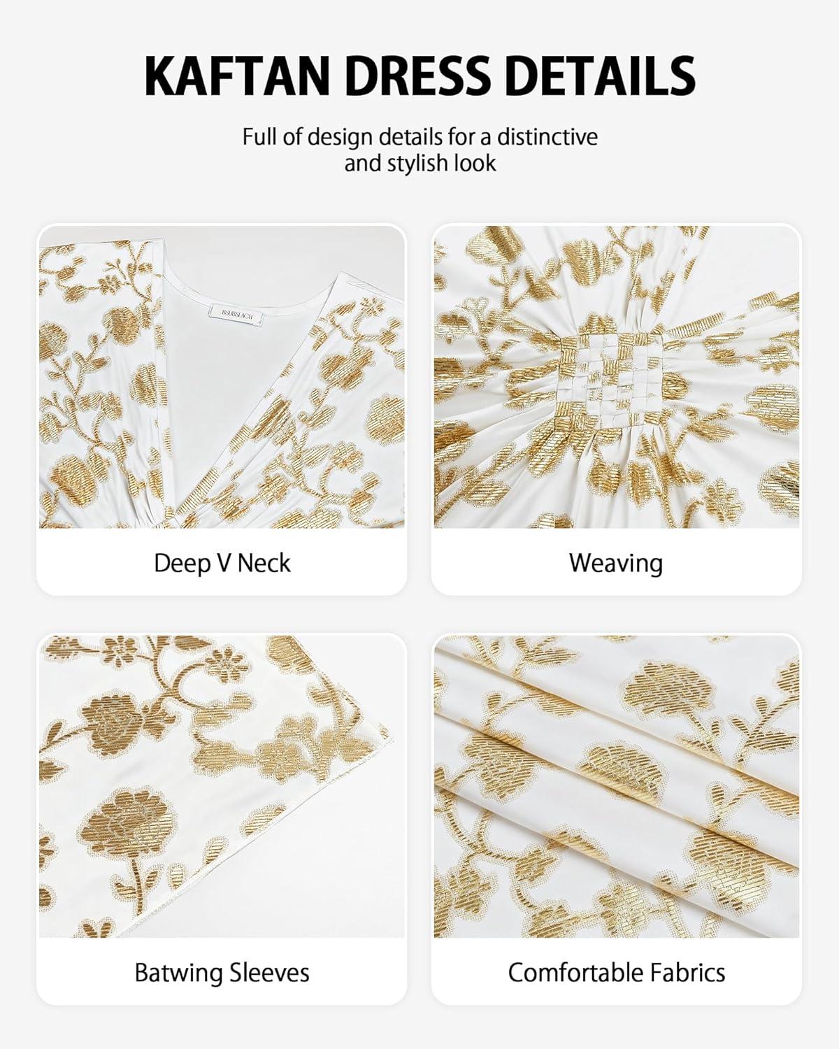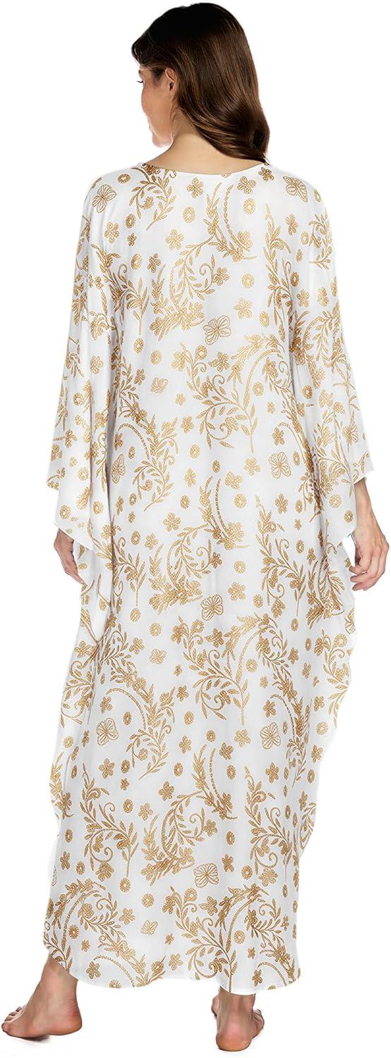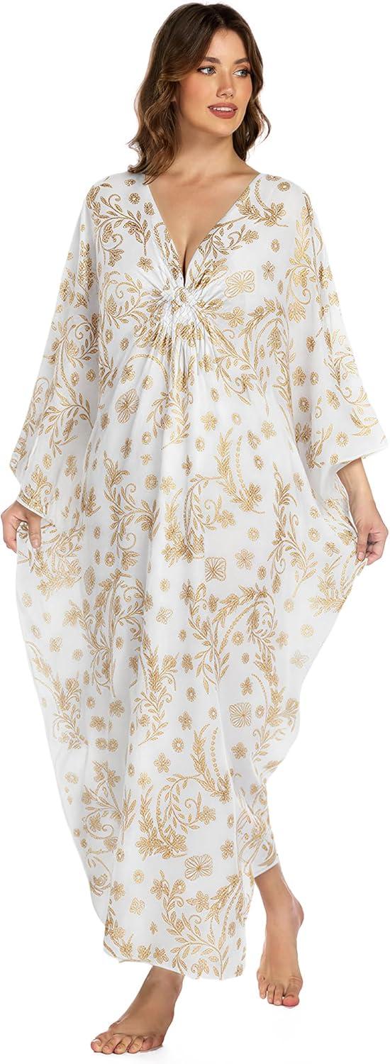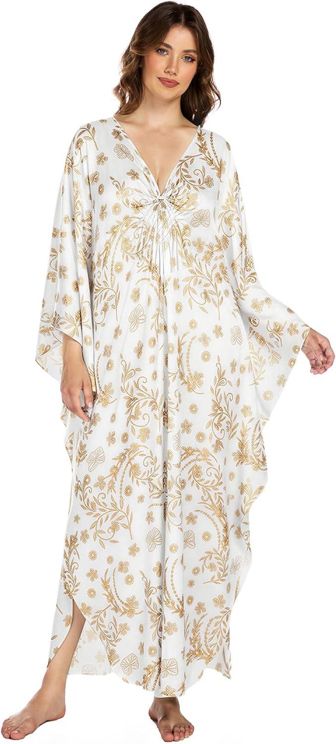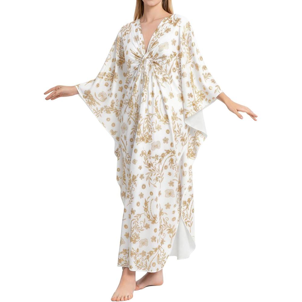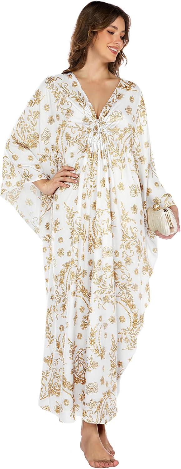 Bsubseach Kaftan Dresses for Women Plus Size Caftan Batwing Sleeves Beach Cover Up Maxi Beach Dress(White)