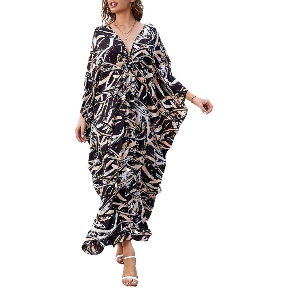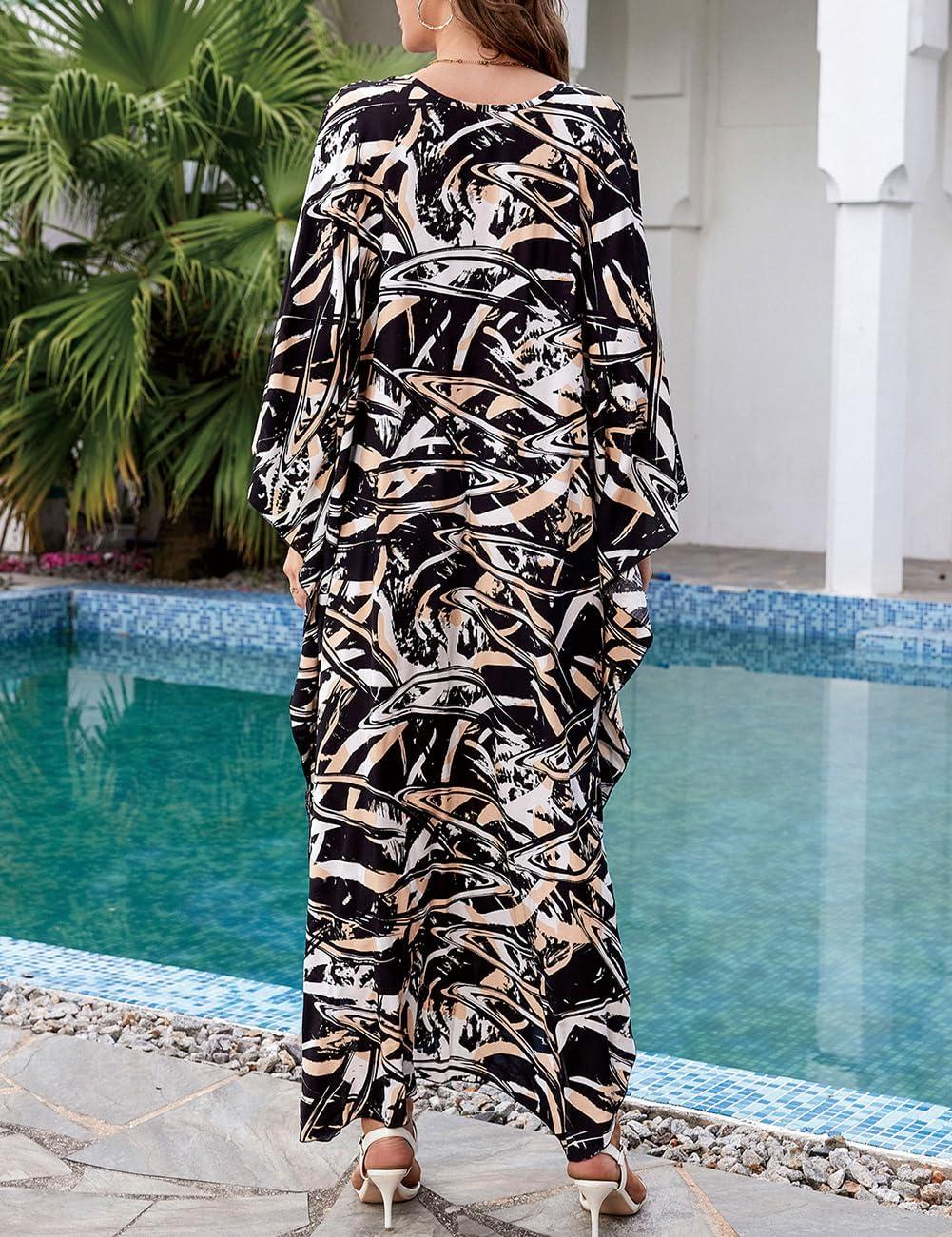 Bsubseach Swimsuit Cover Ups for Women V-neck Print Pattern Women's Caftan Dress