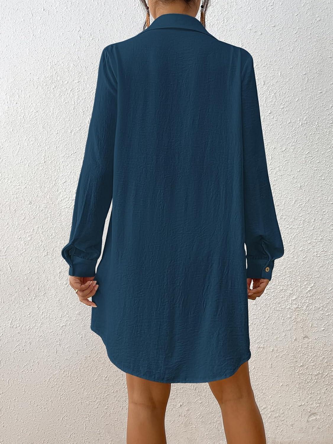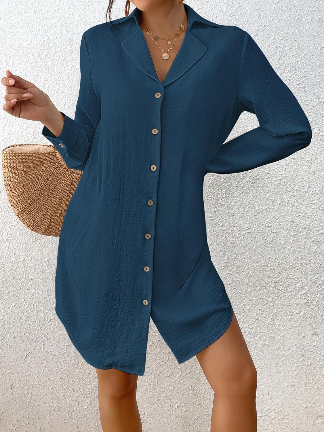 Bsubseach Swimsuit Coverup for Women Long Sleeve Bathing Suit Cover Up Blouse Button Down Shirt Dress Beach Vacation Clothes(Navy Blue)