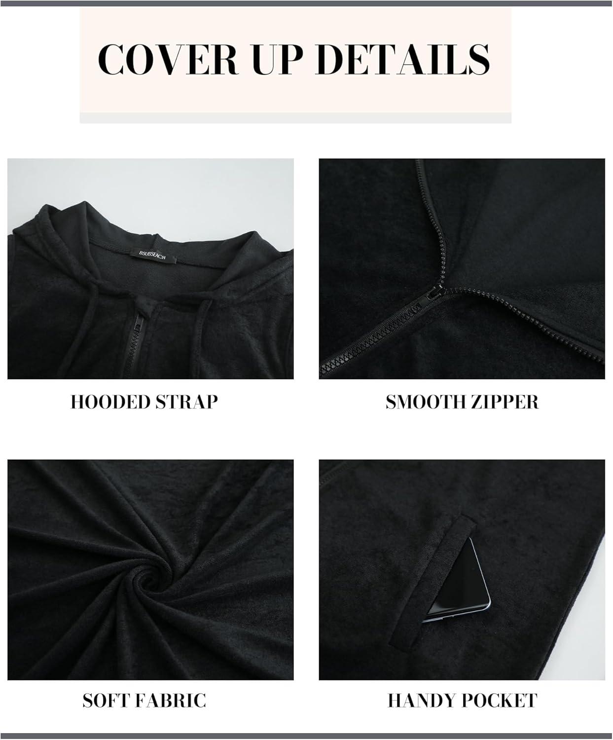 Bsubseach Terry Cloth Cover Up – Women Hooded Swimsuit Coverup Zipper Beach Coverups Sleeveless Swim Robes with Pockets(Black)