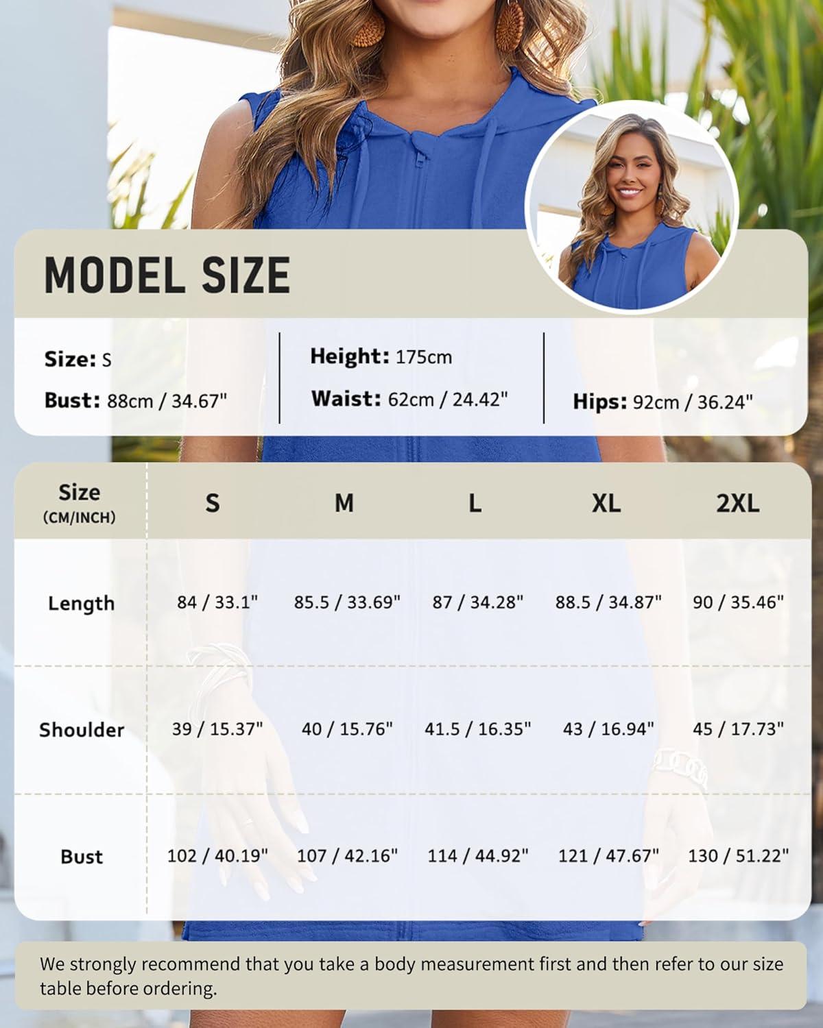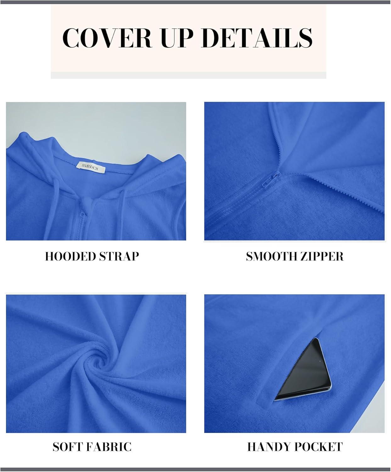 Bsubseach Terry Cloth Cover Up – Women Hooded Swimsuit Coverup Zipper Beach Coverups Sleeveless Swim Robes with Pockets(Blue)