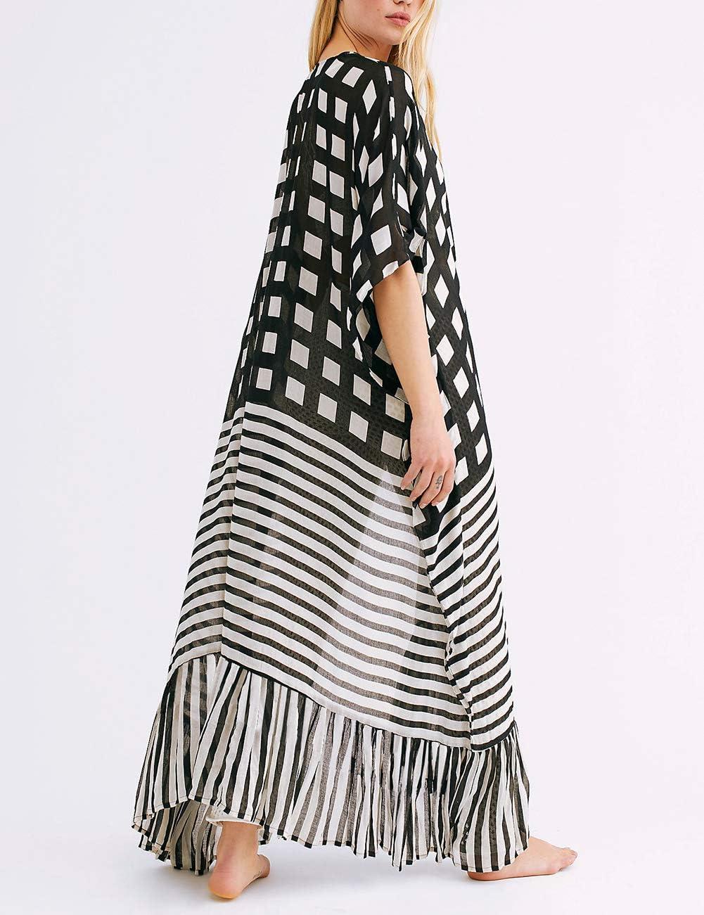 Bsubseach Striped Kimono for Women 2025 Swimsuit Coverup Boho Beach Cover Up Open Front Cardigan Summer Short Robe(Black White)