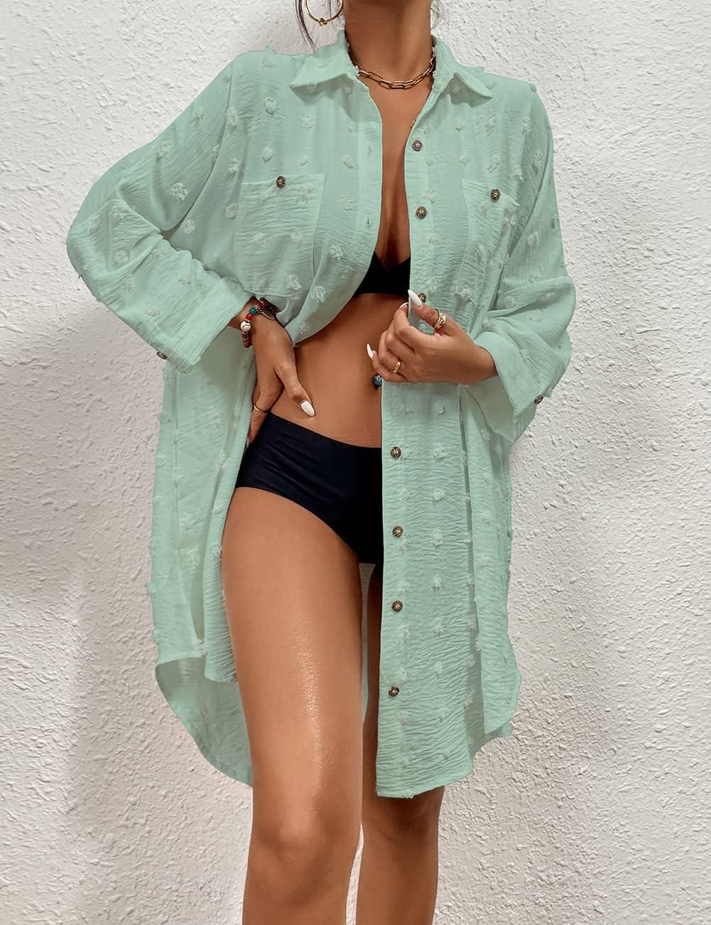 Bsubseach Women Swimsuit Coverup Blouse Button Down Shirt Dresses Swiss Dot Tops(J-mint Green)