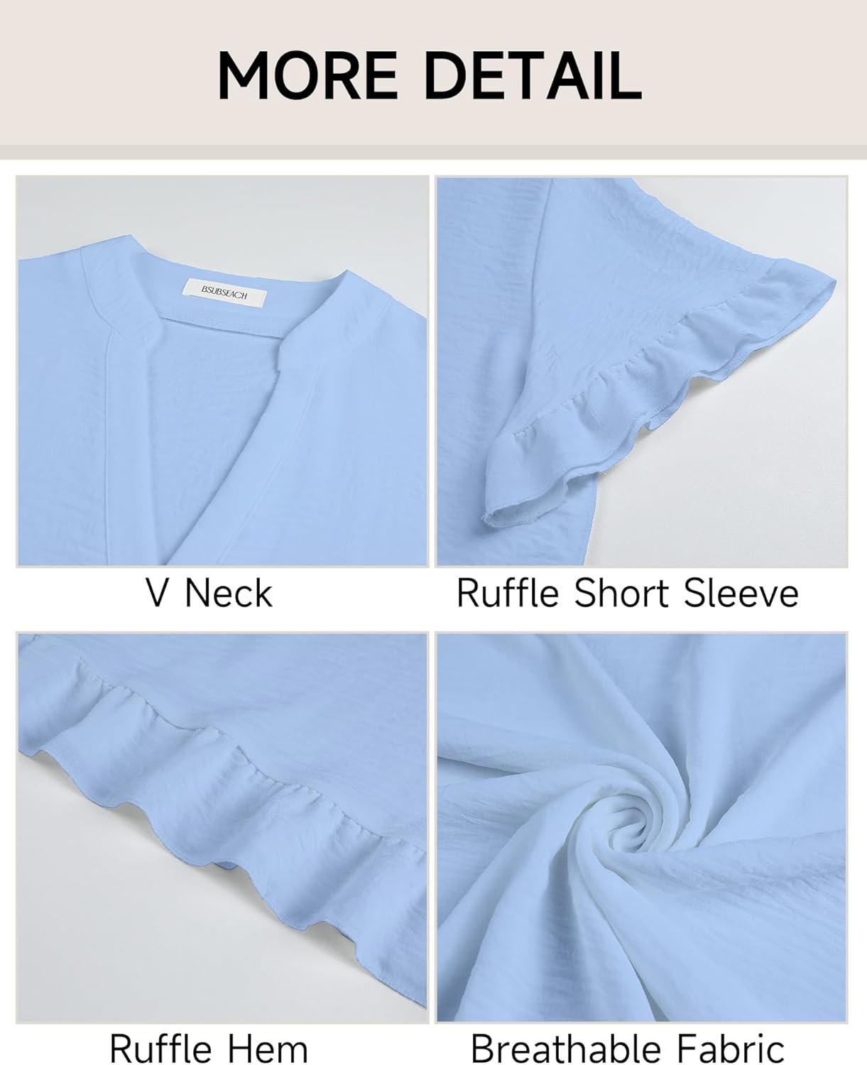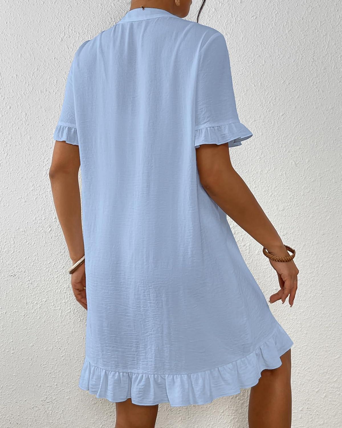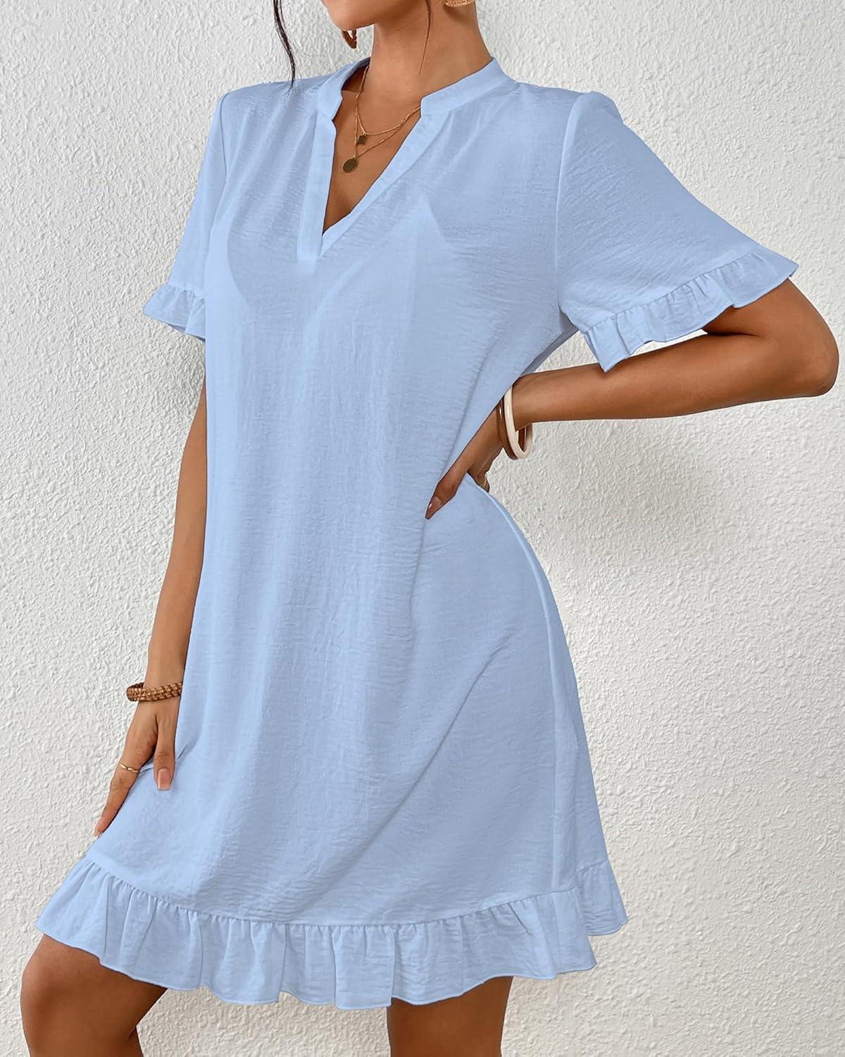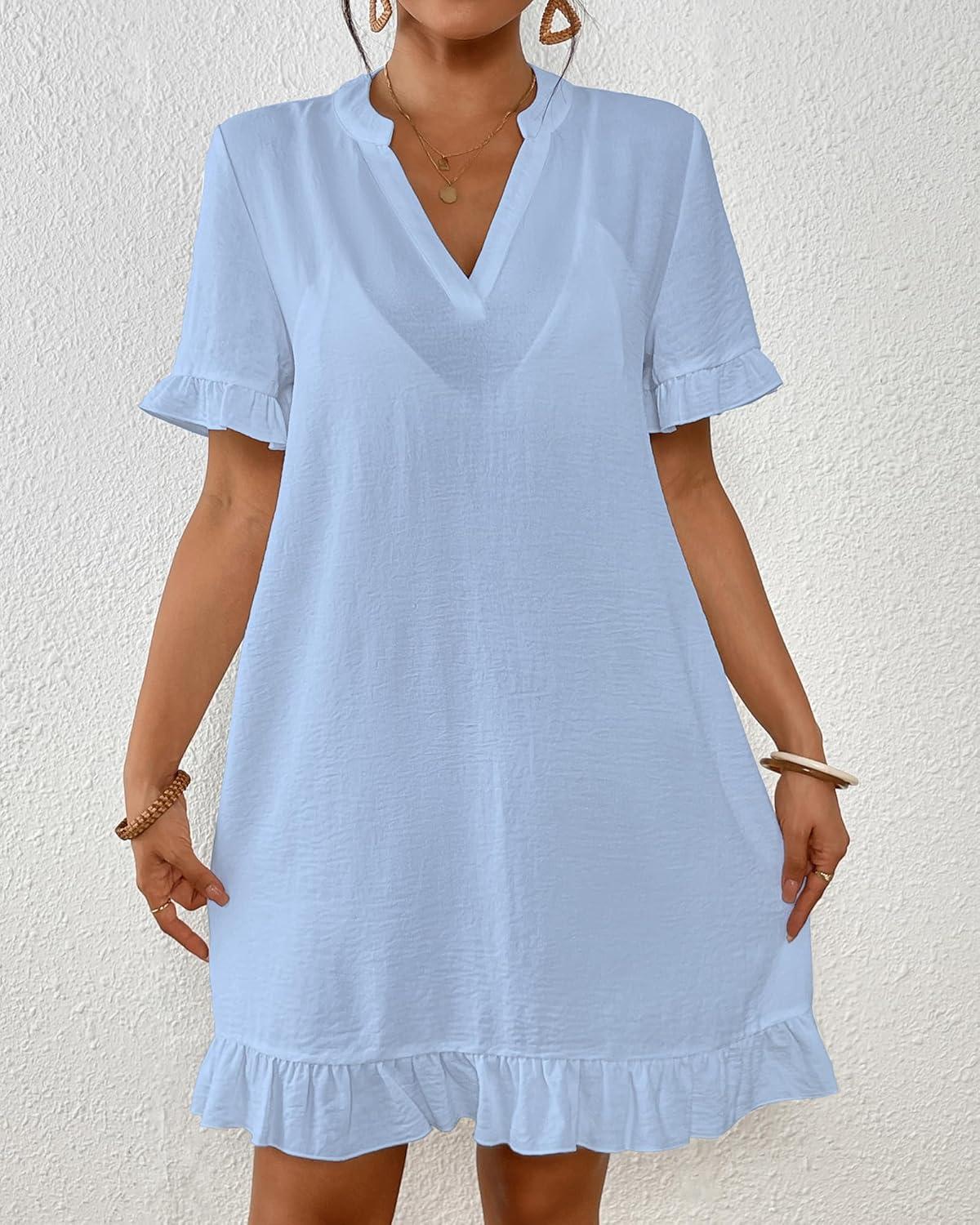 Bsubseach Womens Swimsuit Cover Up Shirt Ruffle Short Sleeve Bathing Suit Coverups V Neck Flowy Ruffled Beach Bikini Dress(Sky Blue)