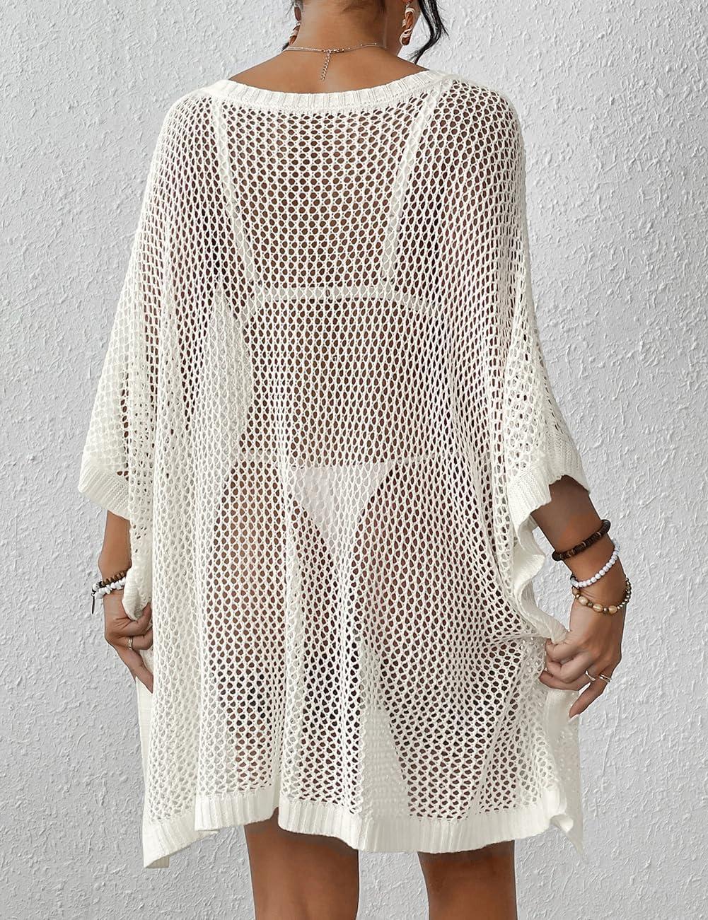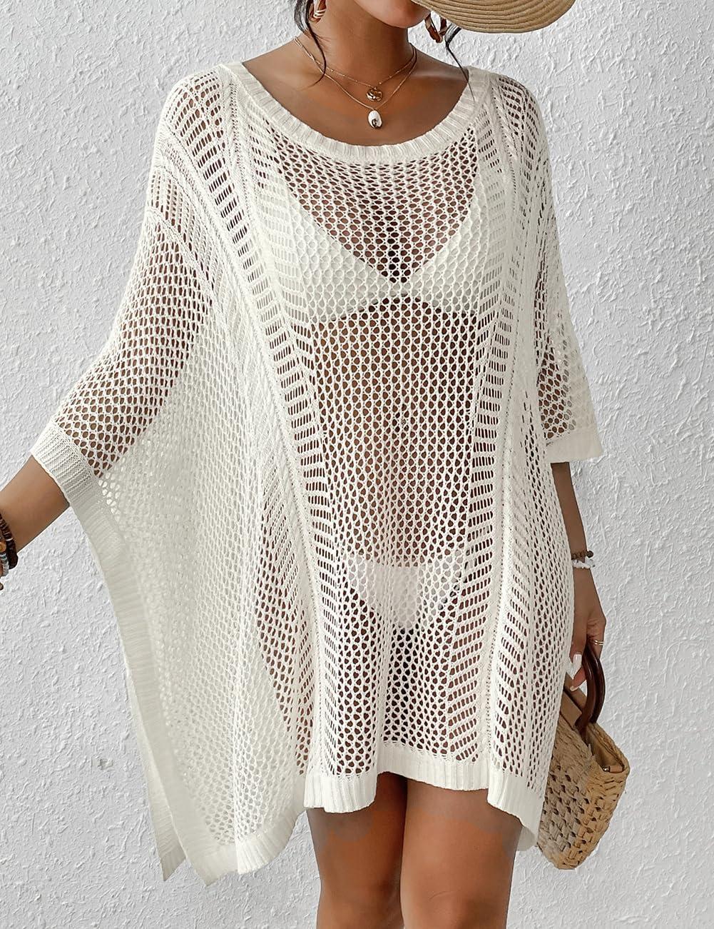 Bsubseach Women’s Swimwear Cover Ups for Bathing Suit Crochet Swimsuit Coverup Knit Beach Dresses Vacation Outfits(White)